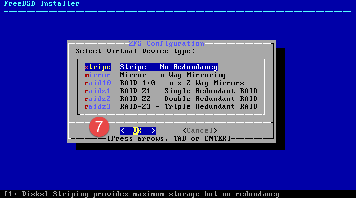 When selecting filesystem configuration, ZFS with striping is sufficient for my requirements as the device only has the one SSD available.