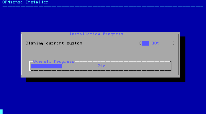 OPNsense will continue to load until presenting the completing the initial post-boot configuration.