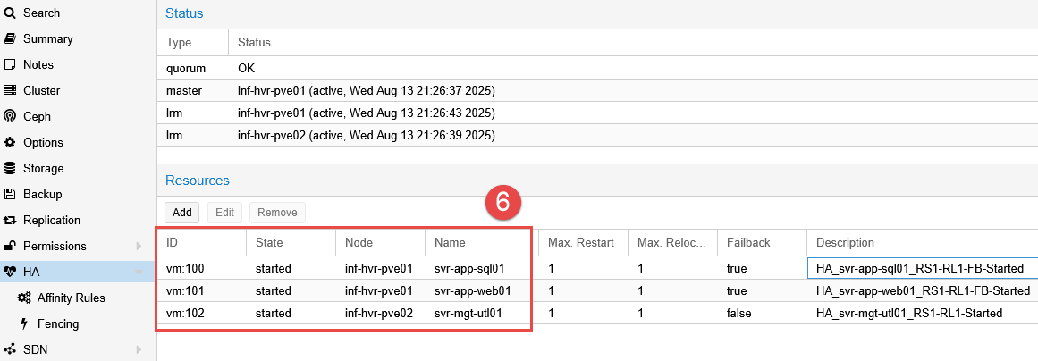 This process adds the resources (VMs) into High Availability, allowing rules to be created for them and define their behaviour during failover events.